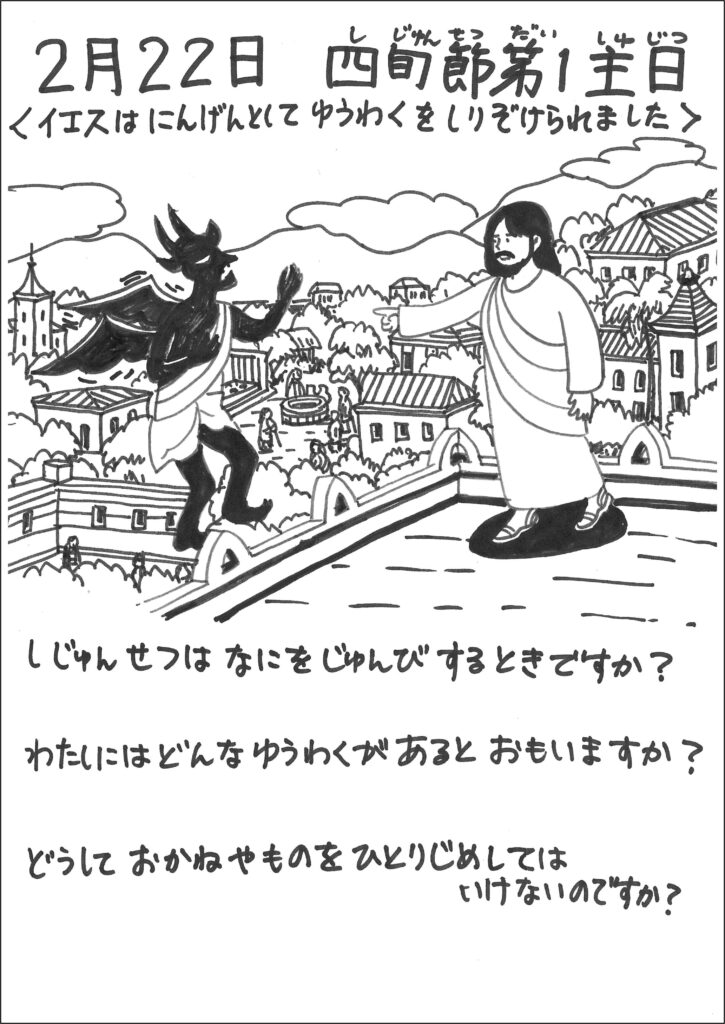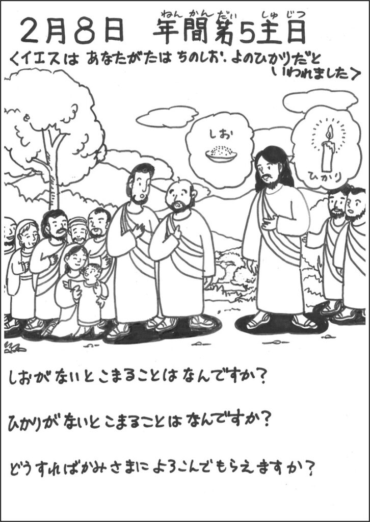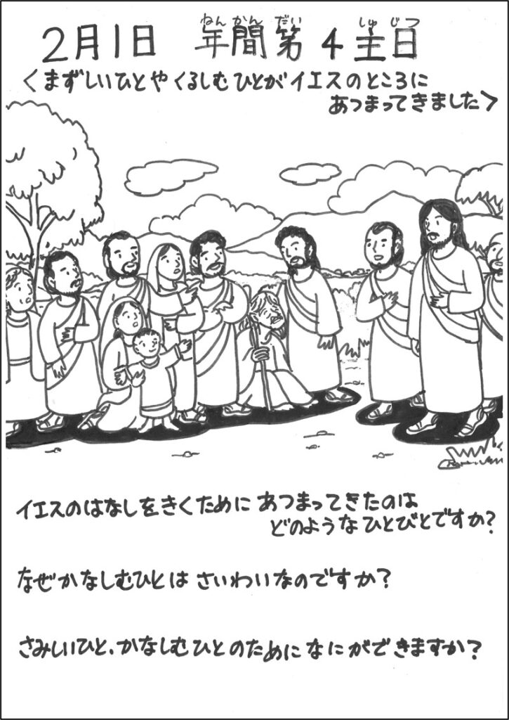 教会学校プリント 2026年2月教会学校プリント 2026.01.30 PDFはこちら→ 2026年2月教会学校プリント 1月25日 年間第3主日「天の国は近づいた、わたしについてきなさい」 前の記事 2月1日 年間第4主日「絶望を希望に変えることば」 次の記事